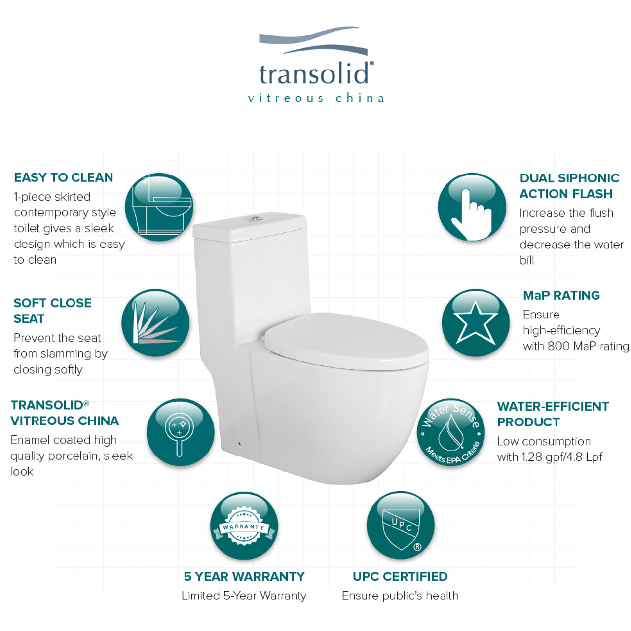 Transolid Pierce 1 Piece Elongated Vitreous China Dual Flush 1.28